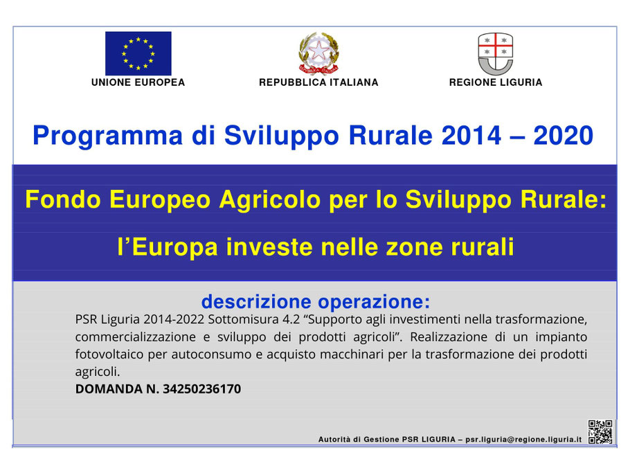 Ca' Messighi srl ha realizzato progetti cofinanziati con le risorse POR FESR LIGURIA 2014-2020